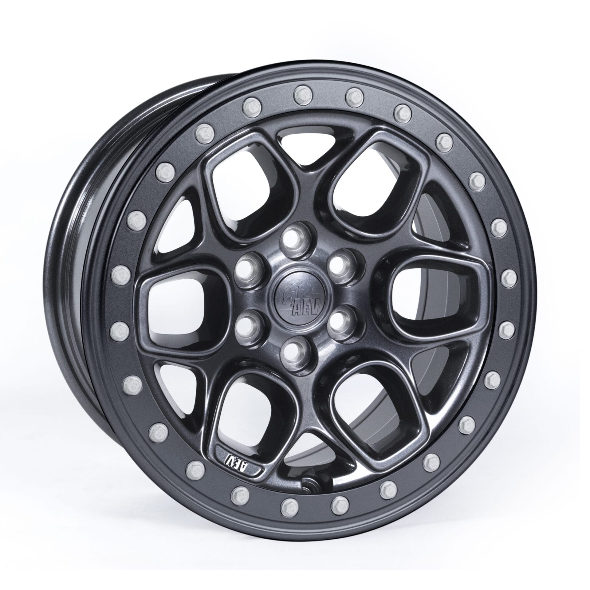 - Beadlock Ring – The Beadlock Ring has a 16mm thick, forged aluminum Beadlock ring and special Grade 10.9 metric hardware for greater shear strength and higher torque needs. The Beadlock Ring is solely recommended for off-road use, according to AEV.