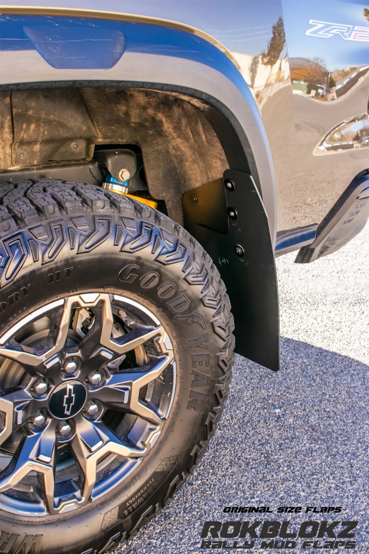 RokBlokz mud flaps for the 2023+ Chevy Colorado ZR2/Trailboss are CNC laser carved from a unique material designed to survive the worst conditions, including intense heat and cold.
